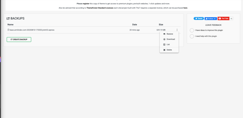 After the import is completed, Proceed to restoring the backup from the backups section under All-in-One WP Migration.