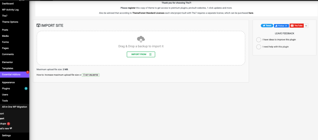 From the WordPress Dashboard under All-in-One WP Migration, Proceed to importing the downloaded export.